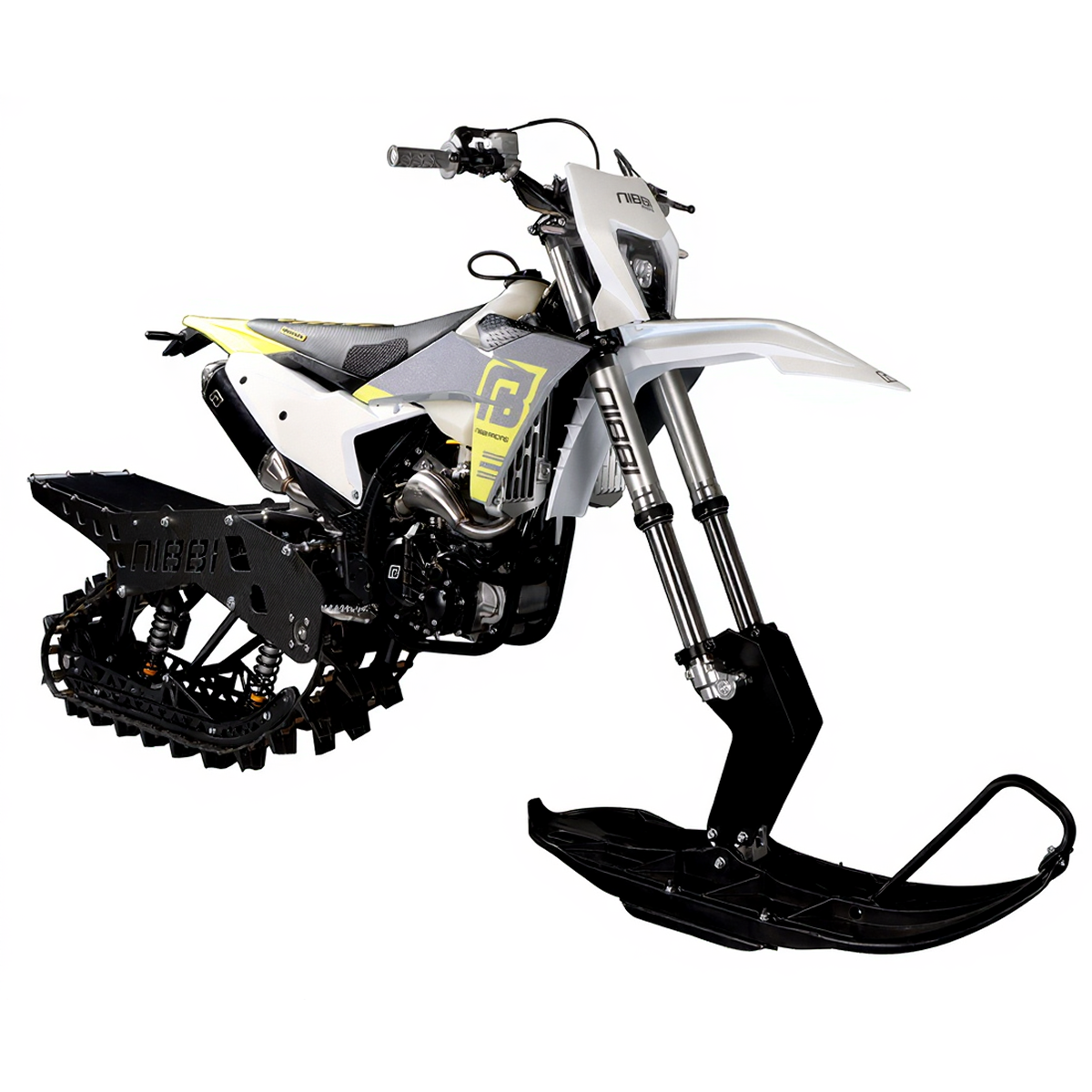 Вместо переднего колеса устанавливается лыжа, а заднее заменяется на гусеничный модуль — и ваш мотоцикл готов покорять заснеженные трассы, глубокий пухляк и ледяные склоны.