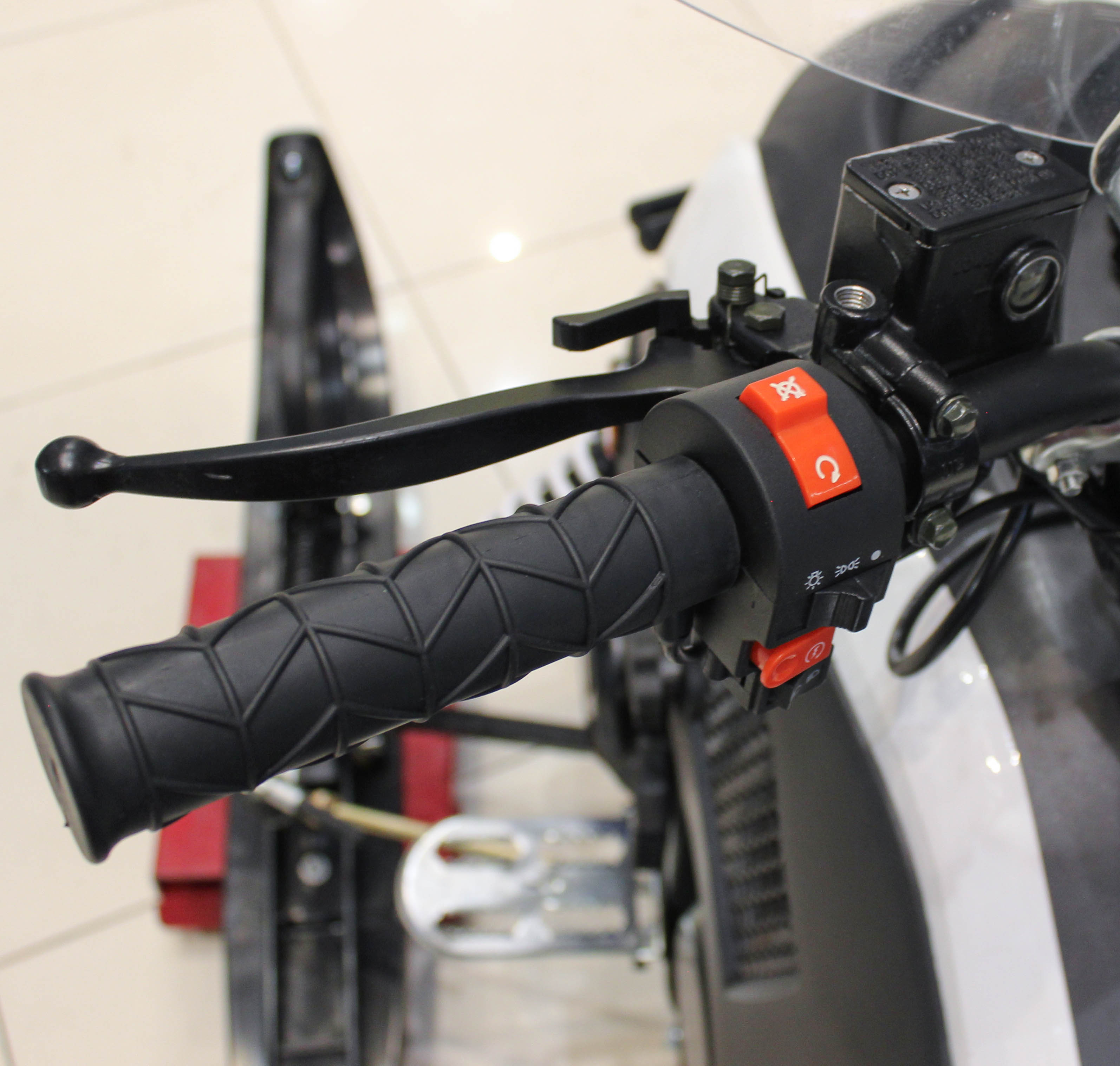 Ручки с подогревом делают езду комфортной даже в морозную погоду. Цифровой дисплей на руле снегохода отображает основные параметры его работы.