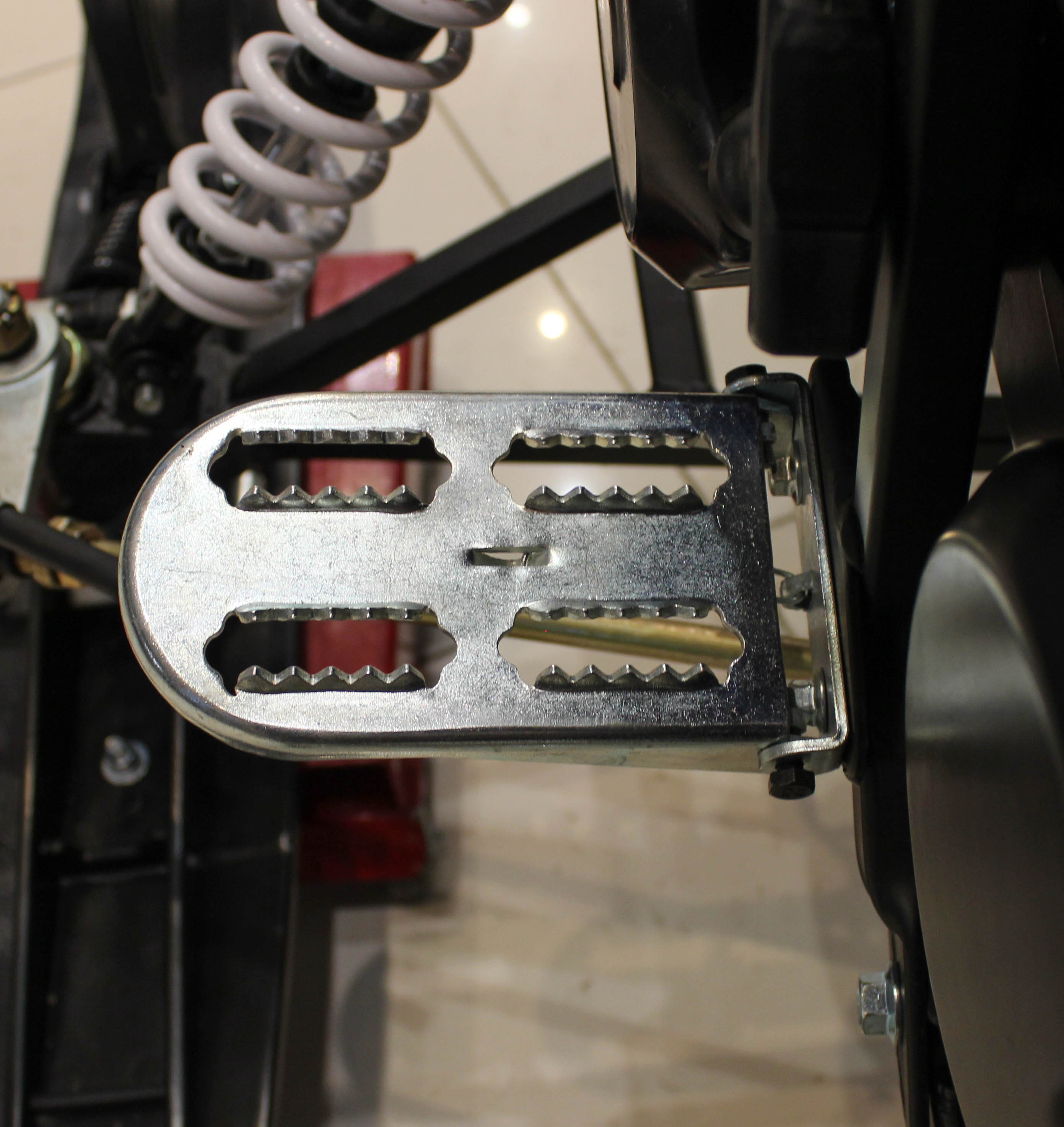 Прочная стальная рама и двухместное сиденье позволяют кататься вдвоем, а регулируемая подвеска обеспечивает комфорт и безопасность при езде по неровной поверхности.